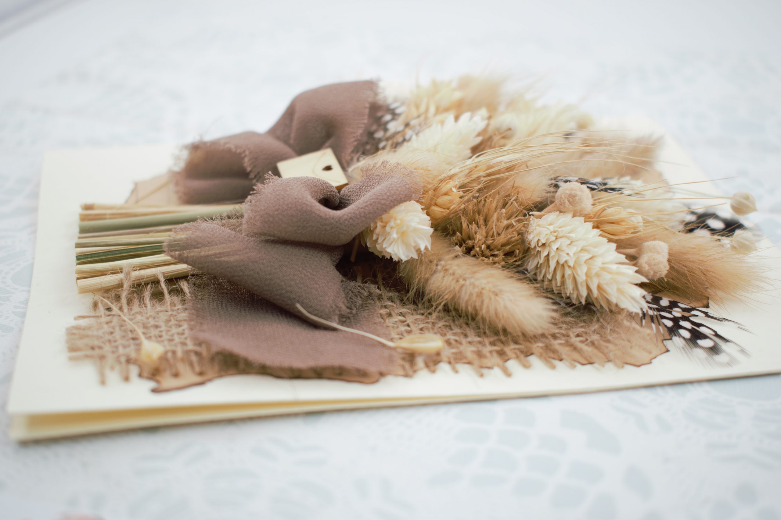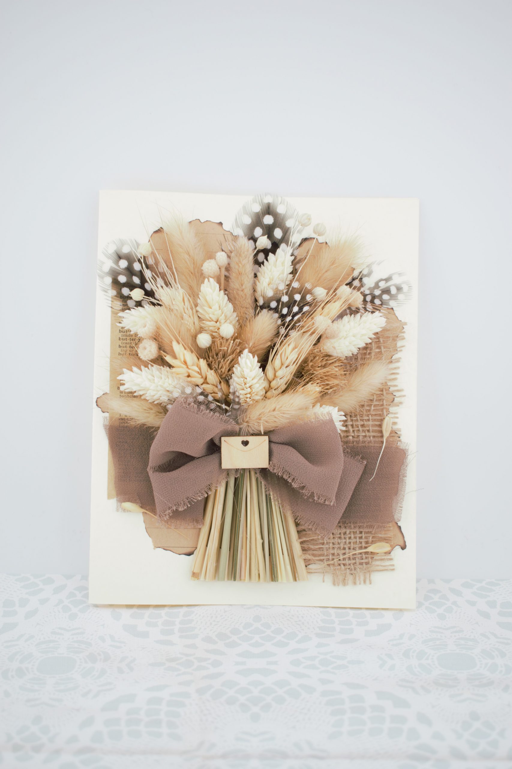 Delight in the beauty of nature with this unique card, adorned with a delicate bouquet of dried flowers and soft feathers. Perfect for any special occasion, this card combines rustic charm with elegant simplicity, offering a heartfelt and lasting expression of your sentiments.