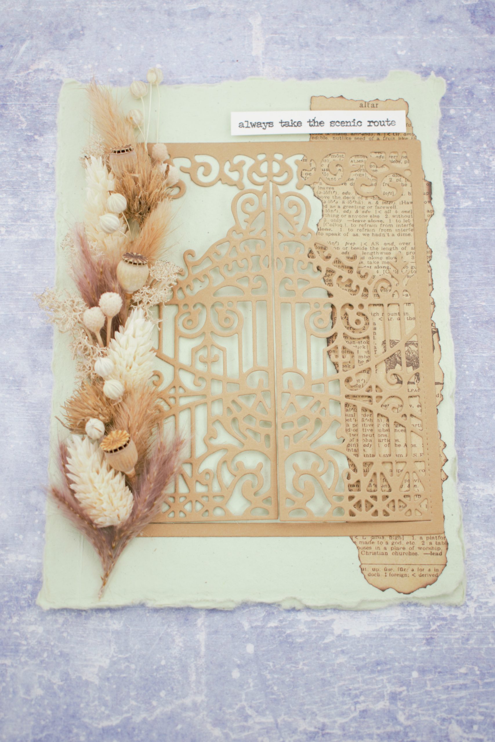 Step into a world of nostalgia and charm with our Whimsical Gate Card. Featuring an intricately designed gate adorned with delicate dried flowers, this card captures the beauty of nature and the passage of time. The aged appearance of the old paper adds a touch of history and warmth, making it feel like a cherished keepsake. Perfect for any occasion, whether it’s to send heartfelt wishes, celebrate a special moment, or simply to share a friendly note. This card invites the recipient to explore the beauty of life’s little treasures, combining rustic elegance with a sense of wonder.